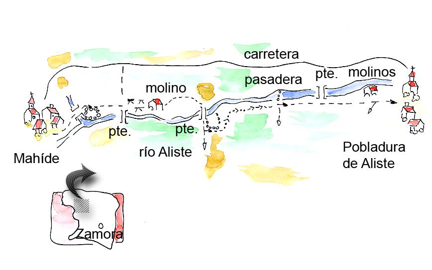 Mahíde de Aliste y Pobladura son dos localidades alistanas unidas por el discurrir del río Aliste, que vertebra y da nombre a la comarca. De la una a la otra median 4,5 deliciosos kilómetros de ribera bien aderezados de pequeños molinos tradicionales, sotos frescos, densos robledales y castañares tupidos. Una delicia que sólo enturbia la contaminación que en algunos recodos se recoge formando espumas.
