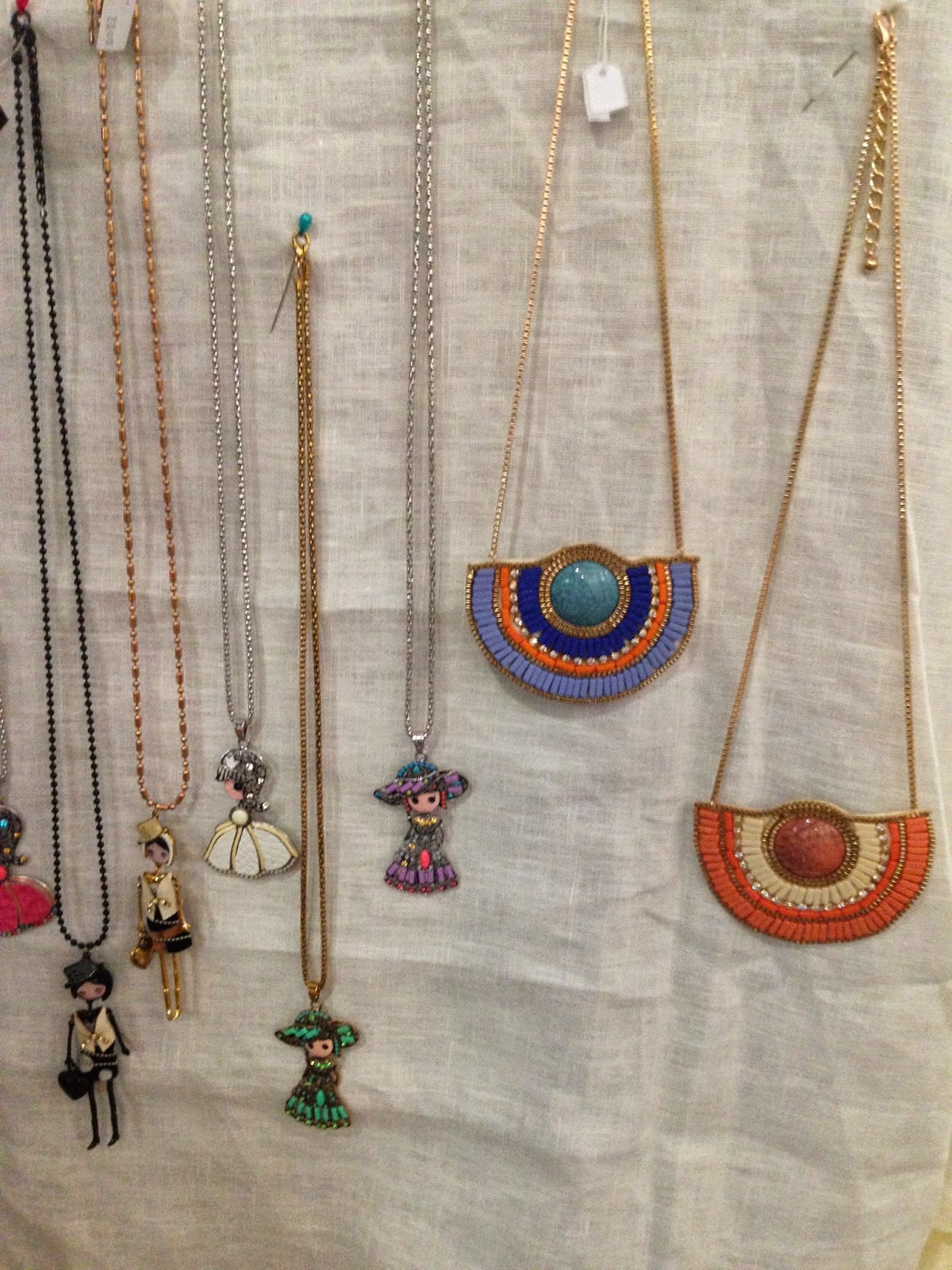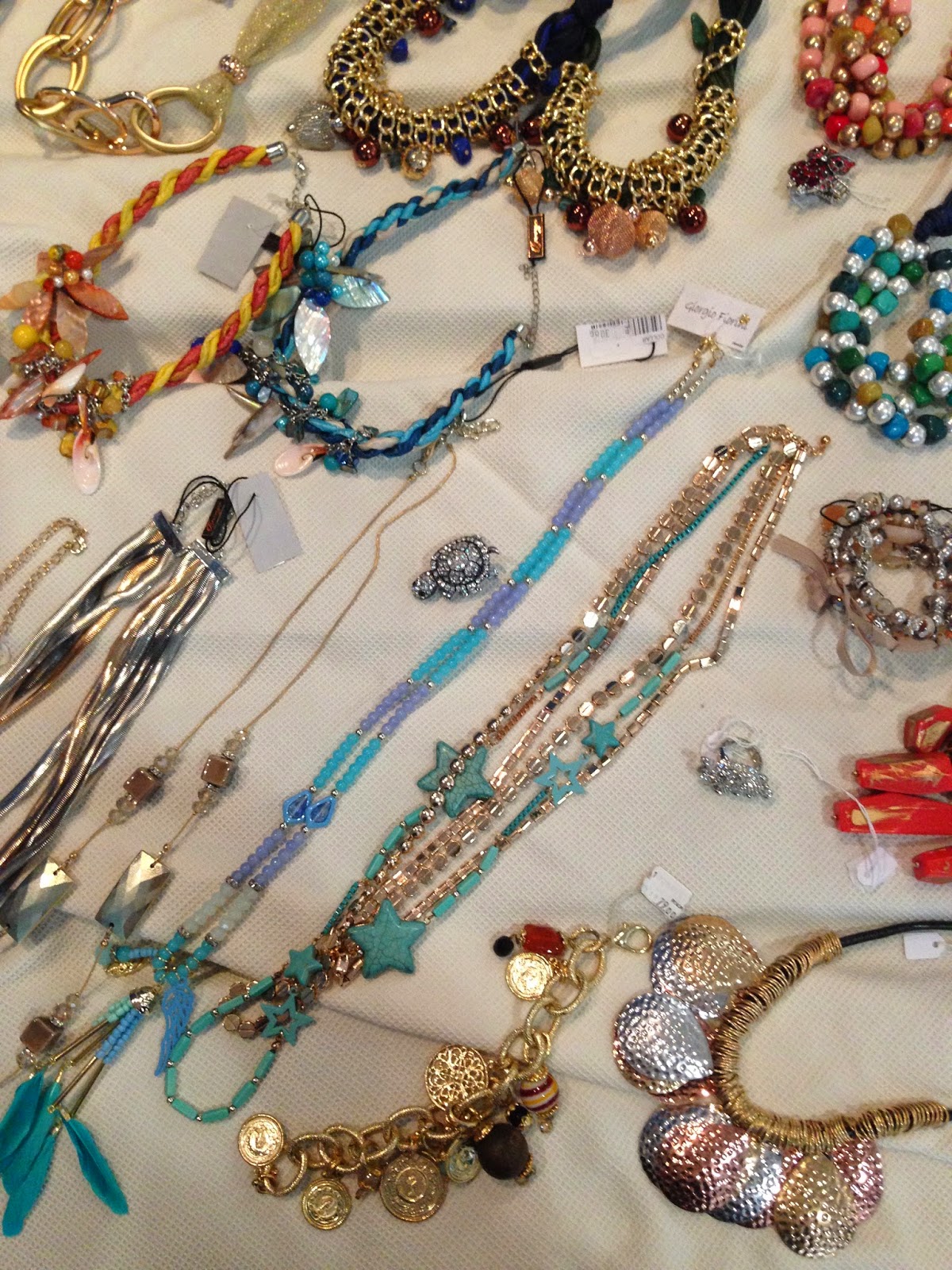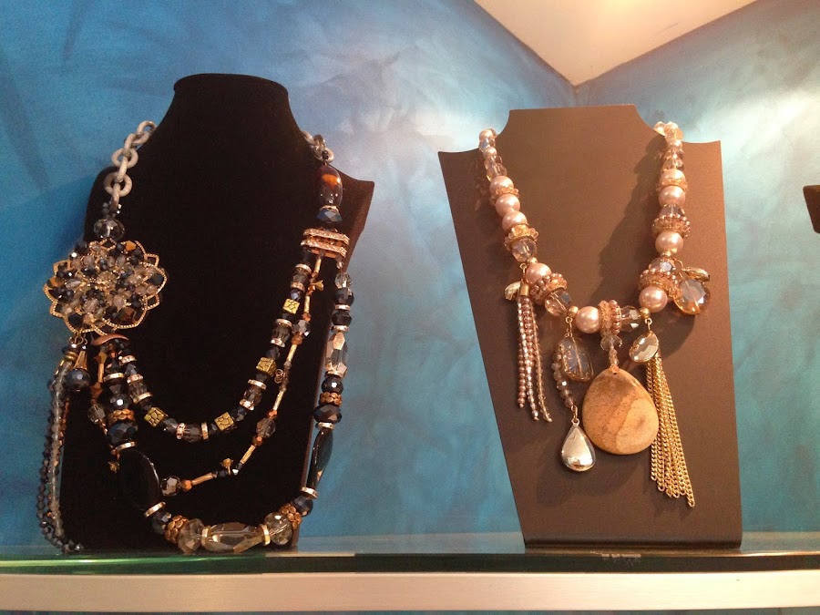 ¿Os gustan los collares? Pues hay para elegir...todos estos que os enseño en la foto, ¡y muchos más! Los cortos y grandes, que últimamente están muy de moda, quedan genial con una camisa básica para un look más rompedor y llamativo.