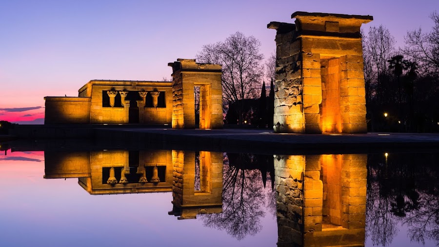 Fue inaugurado el 20 de julio de 1972 por don Carlos Arias Navarro, alcalde de Madrid, tras dos años de reconstrucción. El templo, originario del antiguo Egipto y con 2.200 años de antigüedad, fue un regalo de Egipto a España por su colaboración en el salvamento de los templos de Abu Simbel, en Nubia. Templos que hubieran quedado sepultados en la construcción de la Gran Presa de Asuán.
