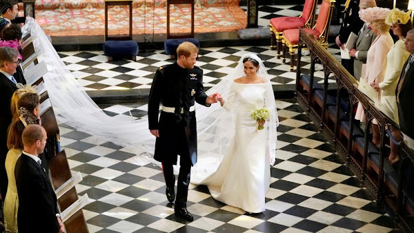 5.000 periodistas y 80 medios internacionales cubrieron ayer sábado el enlace real del príncipe Enrique, nieto de la reina Isabel II. A eso de las 12 (las 13 horas en España) Markle se dejaba ver con un elegante y minimalista vestido blanco, diseñado por Givenchy, y un largo velo ajustado por una preciosa tiara de diamantes que pertenece a la reina.