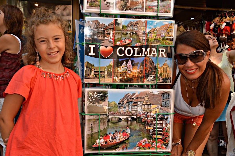 De momento nosotros seguimos con nuestro paseo, considerando si hacerlo o no, a lo largo del día, aunque por las postales que nos encontramos en las tiendas de souvenirs, vemos que existe otra posibilidad y que nos llama muchísimo mas la atención a todos, conocer Colmar en un paseo en barquito por sus pequeños canales. Te aseguro que es una excursión super bonita, y tanto si vas con tus hijos como sin ellos ¡No te la puedes perder!