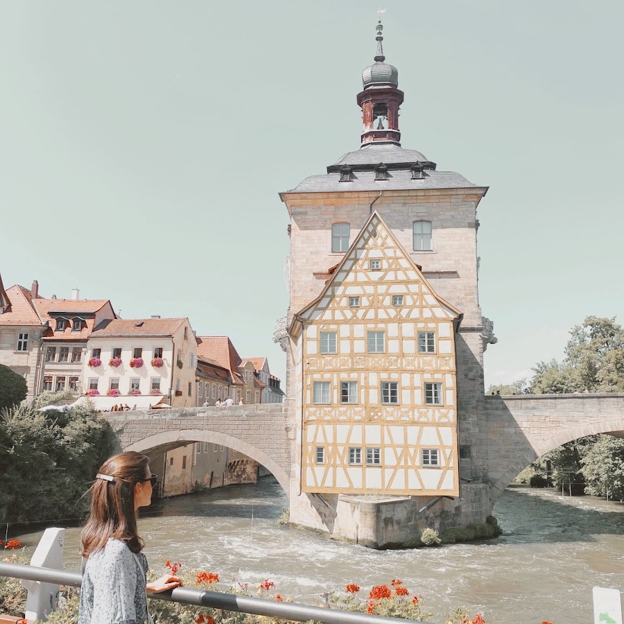 La razón por la que visitamos Bamberg fue porque nos quedaba muy cerca de un hotel donde nos alojamos unos días y del que pronto os hablaré. Si os digo la verdad, ni siquiera llevé la cámara y me dediqué a disfrutar, por lo que apenas tengo fotos. Lo que tenía claro desde el primer momento, es que quería visitar su famoso ayuntamiento que podéis ver tanto el la foto de arriba como en la de abajo. Es más conocido como Altes Rathaus y tan solo por verlo, la escapada ya estuvo más que amortizada. Todo lo que gira a su alrededor es muy bonito: calles empedradas, tiendas y fachadas inspiradoras. Y también, muchas cafeterías o restaurantes de esos que invitan a sentarse.