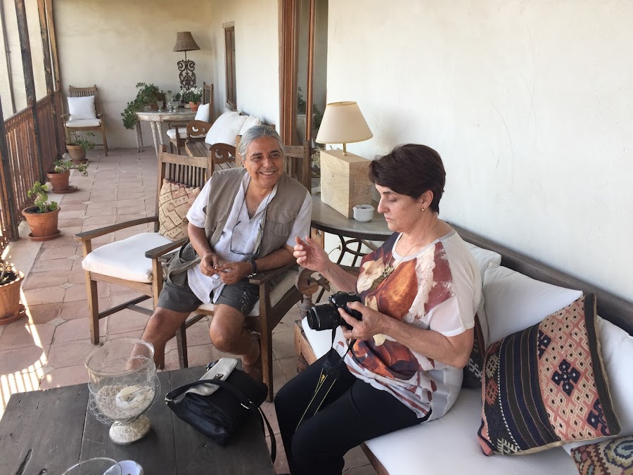 Luego le invitamos a tomar un chato en el pueblo, pero él gentilmente nos invitó a su casa. Gran honor estar allí. Nos sentamos en una terraza, desde la que podíamos ver todo el pueblito de Chinchón y seguimos nuestra conversación acompañados de unas exquisitas tapas, como le dicen allá, las que nos preparó la chica que lleva su casa.