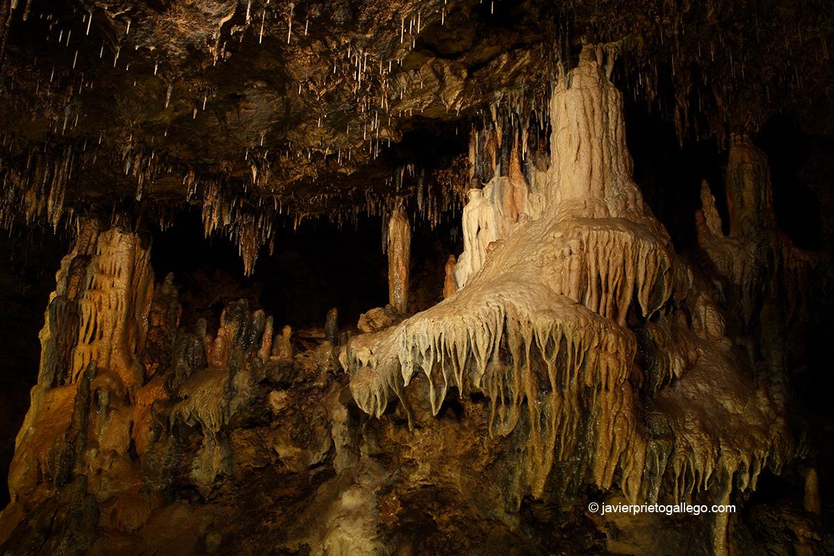 Junto a la localidad segoviana de Prádena se abre una de las cavidades más espectaculares e interesantes de Castilla y León. Y aunque seguramente los hombres que las utilizaron como refugio y cementerio hace unos 4.000 años no las veían con los mismos ojos, la verdad es que tampoco extrañaría mucho imaginar que debieron quedar extasiados ante el prodigio de colores y formas que el agua y el aire han ido tejiendo, en secreto y sin prisas, bajo el suelo de la sierra de Guadarrama. Puede que haya quien piense que para ellos no fueran más que un mero refugio natural de dimensiones insondables abierto bajo la tierra y sólo malamente vislumbrado a la luz tenebrosa de sus antorchas y hogueras. Pero aún así, algo debieron de ver en ese laberinto repleto de formas sorprendentes y bellas para adentrarse hasta lo increíble sin más conocimiento del terreno ni tecnología que lo rudimentario. Si aún hoy sobrecoge la apabullante sensación de inmensidad laberíntica, creciente a medida que se recorren los 500 metros de pasillos acondicionados para la visita turística, más o menos los mismos en los que se han encontrado rastros ancestrales de paso humano por ellos, ¿qué imágenes o sensaciones debían de albergar en sus mentes aquellos pobladores primitivos al transitar bajo un cielo de estalactitas abierto en mil oquedades de recorrido incierto, al escuchar, rompiendo el denso silencio que acogota las entrañas del subsuelo, el goteo esporádico de las nubes de lanzas calcáreas en continua formación, al perder el rumbo de entrada o de salida confundidos por el juego de sombras cambiantes alimentado por las antorchas…?
