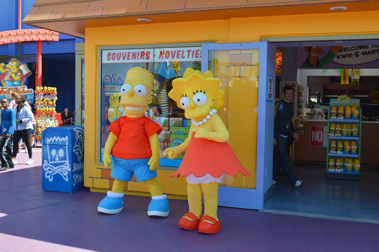 03/04/2014: Ese día lo pasamos casi entero en Universal Studios de Hollywood. Un lugar mágico en el que se pueden ver numerosos escenarios de películas (Regreso al Futuro, Psicosis, Tiburon, etc.) y disfrutar de sus alucinantes montañas rusas virtuales en 3D. Estas se encuentran dentro de lo que serían enormes naves industriales, cada una escenificada en su propia película (Jurassic Park, Los Simpsons, La Momia, Transformers, Gru, Shrek, etc.) Te sientas en una vagoneta como si estuvieras en una montaña rusa y con las gafas 3D proyecta en una o varias enormes pantallas, las caidas, giros y movimientos también con el asiento en movimiento como lo estas viendo, realmente alucinante.
