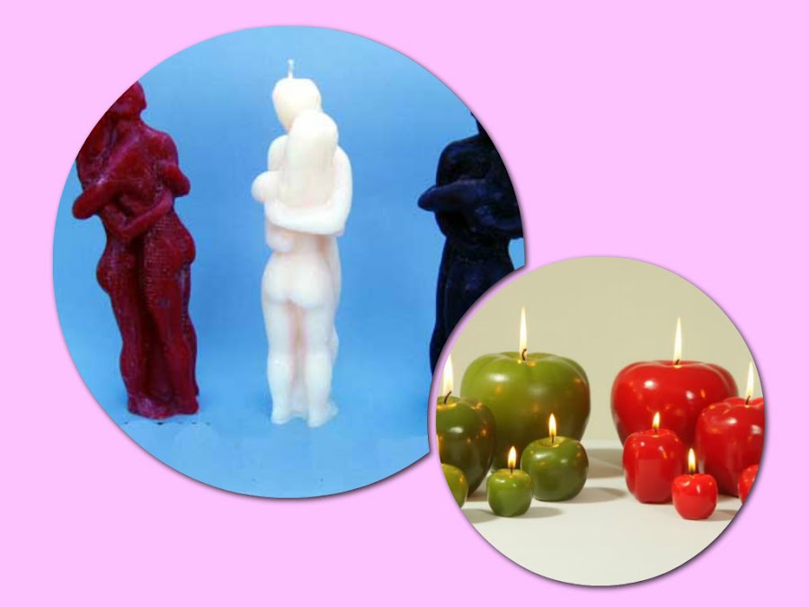 Vela en forma de manzana.-utilizada en relaciones que pasan por momentos difíciles, debe ser utilizada con muco cuidado ya que al tratarse de una vela ambivalente puede servir tanto para unir como para separar.Los colores más utilizados son el verde y el rojo.