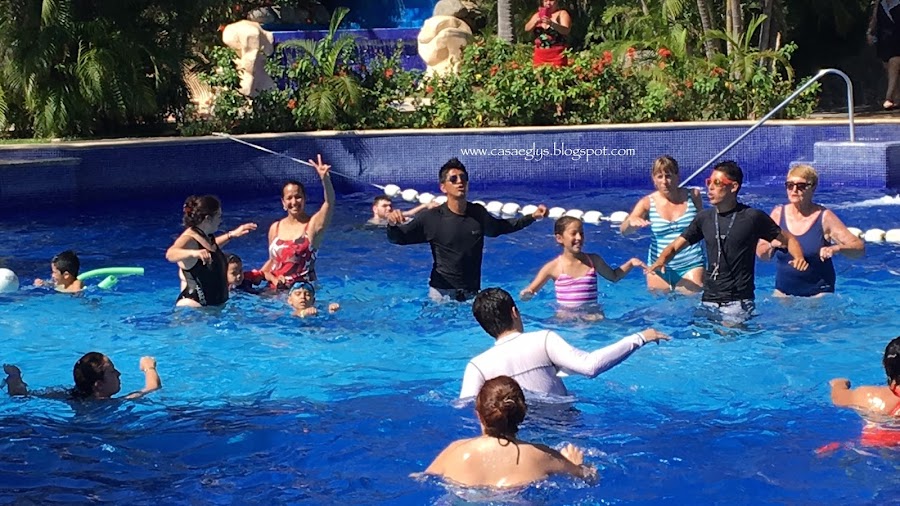 Los niños y yo disfrutamos de las actividades en la piscina.