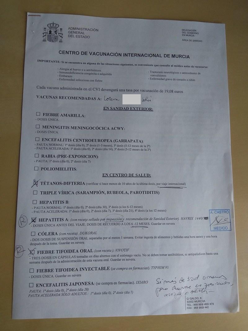 Mi segundo consejo es que empecéis con las gestiones de las vacunas con tiempo, por lo menos 5-6 meses antes que os vayáis a la India y más si os pilla algún periodo vacacional en medio. En el centro de vacunación no os dan cita de un día para otro precisamente. Luego tenéis que ir al centro salud, a la inspección médica, comprar las vacunas, encargar las que no tengan (como es el caso de la de la hepatitis A), volver al ambulatorio, ponéroslas… Eso sin contar que la de la fiebre tifoidea (el Vivotif), debéis empezar a tomarlo entre un mes y medio y dos meses antes. Así que, como os dije en la entrada de cómo obtener el pasaporte español, haced los trámites con suficiente antelación.