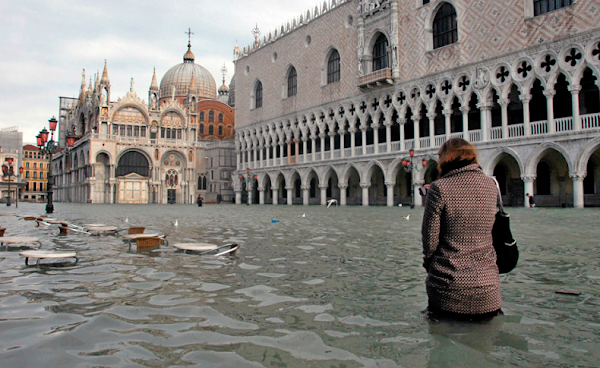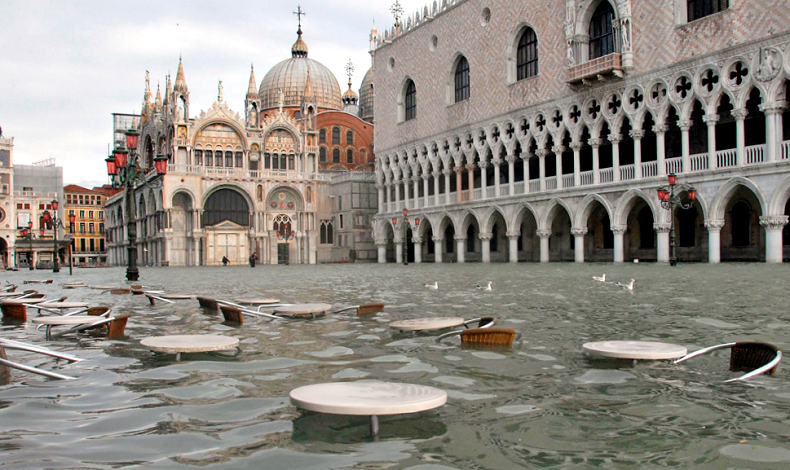 El Acqua Alta son las subidas de nivel del mar Adriático, en consecuencia de las mareas. Esto ha ocurrido desde siempre pero el fenómeno va en aumento, alarmando y amenazando a la ciudad. El calentamiento global también está influyendo en la crecida del mar y a eso hay que sumarle que las 118 pequeñas islas que forman Venecia se unden 2 mm cada año, mucho más rápido de que les gustaría a los científicos. Este último siglo descendió 23 cm y este siglo lo hará 8 cm más. La mayor inundación se registró en 1966 cuando el nivel del agua subió casi 2 metros.