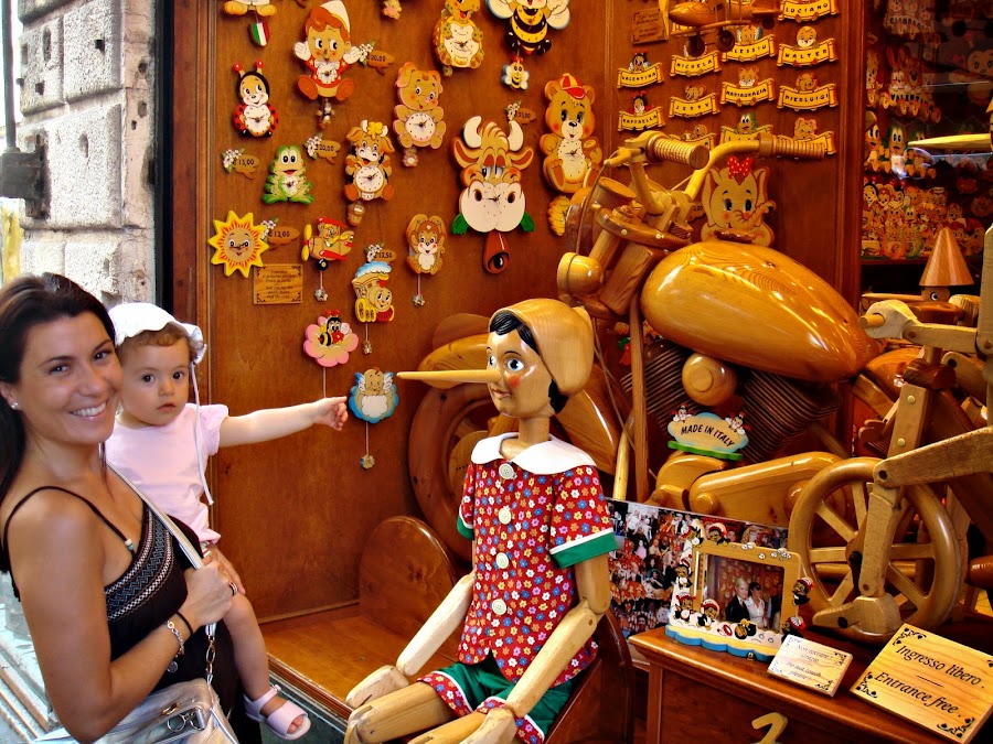 Venecia es una isla de ensueño. Yo todavía recuerdo la primera sensación que tuve cuando la ví por primera vez, recuerdo que justo me llamaba mi madre por teléfono y la cogí diciéndola "mamá esto es una maravilla parece todo de cuento, y acabo de ver la primera góndolaaaaaa" ¡Qué recuerdo mas bonito!, pero es que además ofrece muchísimo mas, sus casas, sus paseos, sus restaurantes, montones de tiendas cada cual mas coqueta y miles de ellas también de ropa italiana, yo no pude aguantarme y le compré a mi hija un trajecito marinero de pantalón y camiseta, preciosísimo y algún que otro recuerdo del simpático Pinocho.