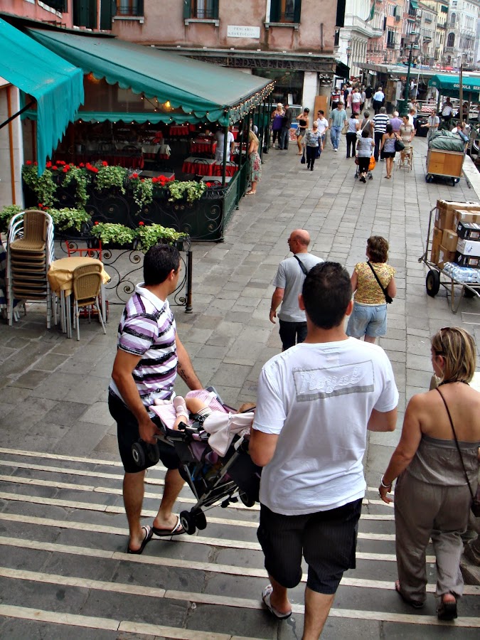 También es cierto y todo hay que decirlo, que la isla tiene tantos puentes con escaleras que resulta bastante incómodo llevar la silla para los niños, pero yo siempre he contado con la ayuda de amigos que nos han ayudado en esta ardua tarea, vamos que no nos importó nada de nada. Para estos segundos de subir y bajar puede que resultara incómoda, pero para el resto del día sobre todo cuando la niña empieza a estar cansada, la silla se convierte en nuestra mejor aliada.