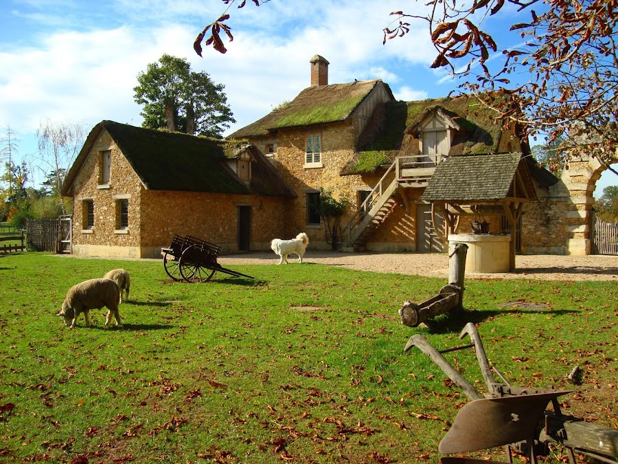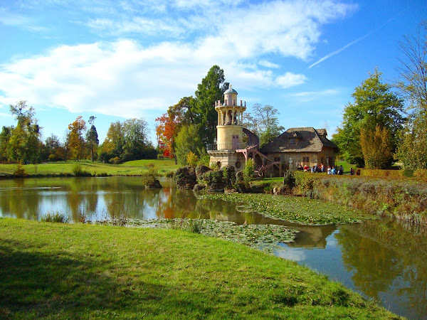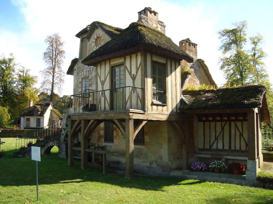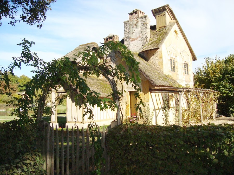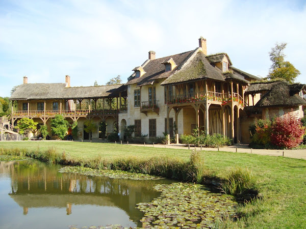 Llegamos a La Aldea de la Reina. Esta aldea inspirada en los caseríos de Normandía, fue creada entre 1783 y 1785.La moda imponía estos regresos a la naturaleza y la reina se sometió a ella.