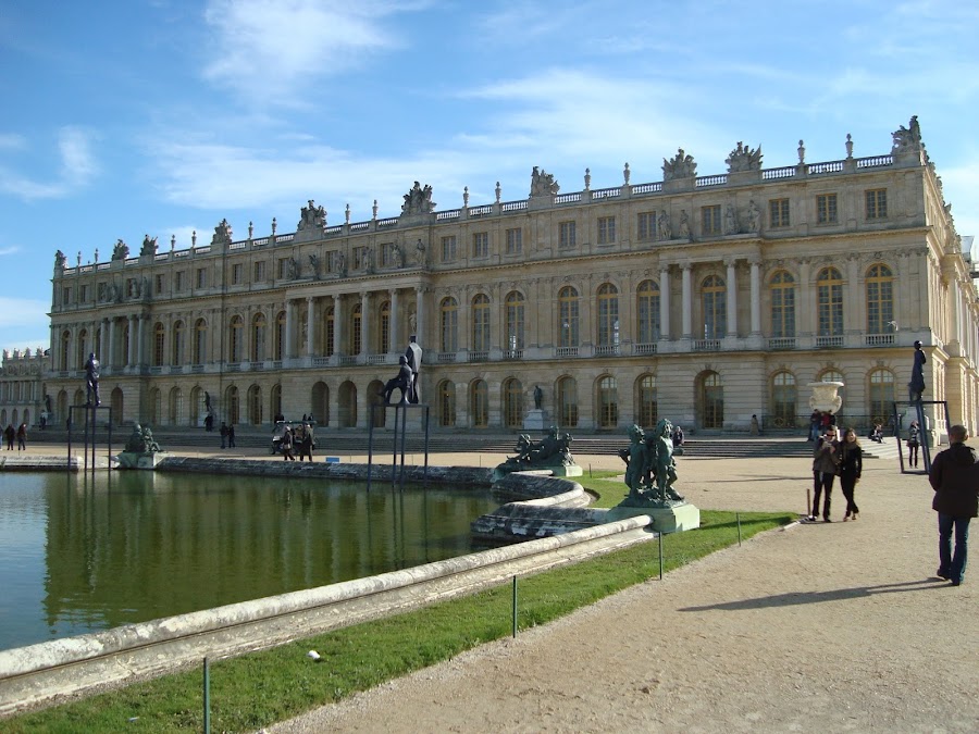 El retiro ansiado supeditó a la corte al traslado de sus dependencias a unos 24 Km. de la ciudad parisina. La aristocracia y su plantilla de sirvientes tuvo pues que trasladarse al completo a un lugar lo suficientemente amplio como para albergar en sus dominios todos los elementos constructivos necesarios para llevar una vida cómoda, pero también para poder poner en práctica el paisajismo desbordado que arropa y guarda a todo el conjunto arquitectónico con su flora y sus elementos decorativos en mármol, madera, bronce y piedra.