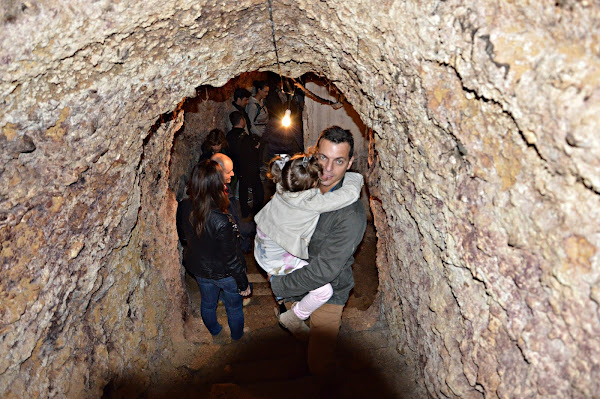 Y como estamos cerca de La Guardia, nos acercamos a este bonito y coqueto pueblo, que invita a pasear, a tomar algo, a quedarse a comer, pero sobre todo invita a recorrerlo para descubrir sus secretos y eso hicimos, descubrimos uno muy curioso y muy profundo. De camino al pueblo, le contamos a nuestra pequeña que íbamos a bajar por una cueva subterránea muy profunda y que quizás encontraríamos al duende del vino escondido. Esa era la historia infantil para crear un poco de magia, la adulta era otra, íbamos a visitar la antigua bodega familiar de López Oria ubicada en una cueva subterránea. Muy interesante y muy misterioso.