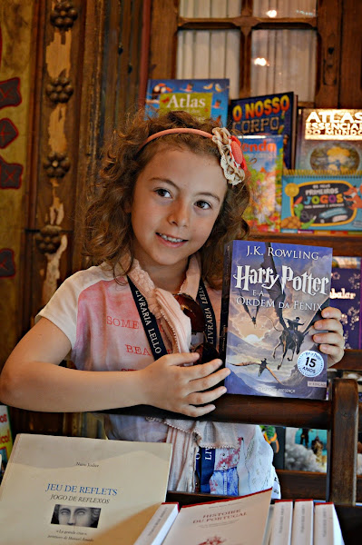 Empezamos a buscar una edición del libro de Harry Potter y encontramos el último que quedaba ese día, gracias a un amable empleado que nos lo encontró. ¡Qué suerte! aunque no era en castellano, sino en portugués.