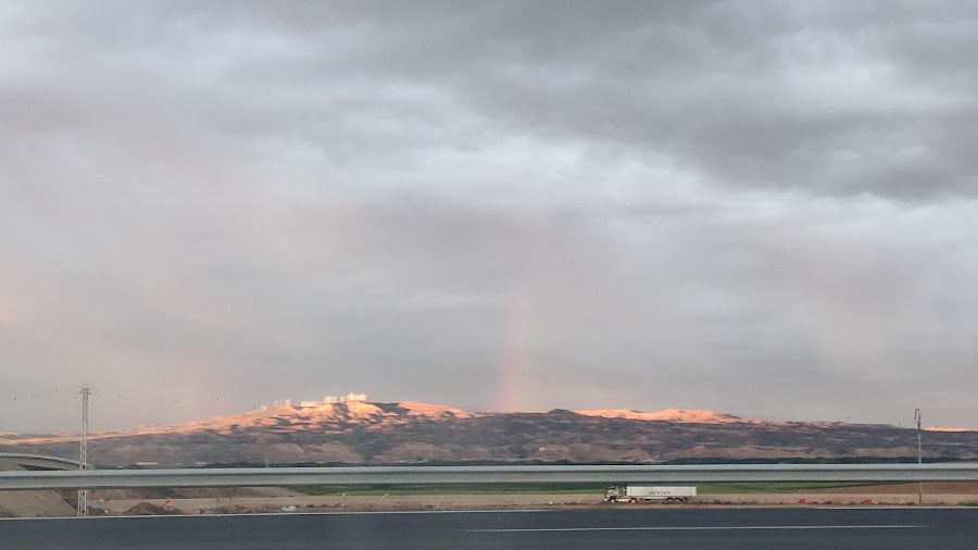 Hasta vimos 2 arcoiris! Pude ver los 7 colores de una punta del arco, una lástima que no se aprecian en la foto por estar el coche en movimiento. Pero muy chulo, pocas veces he podido contar los 7.