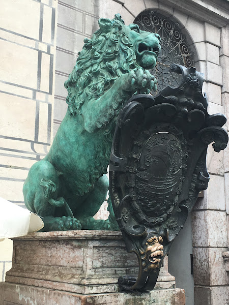 En la Odeonsplatz encontraréis cuatro leones en la fachada de la Residenz, la que fue residencia oficial de la familia real bávara, y es típico tocar la cabeza del escudo para que te dé buena suerte.