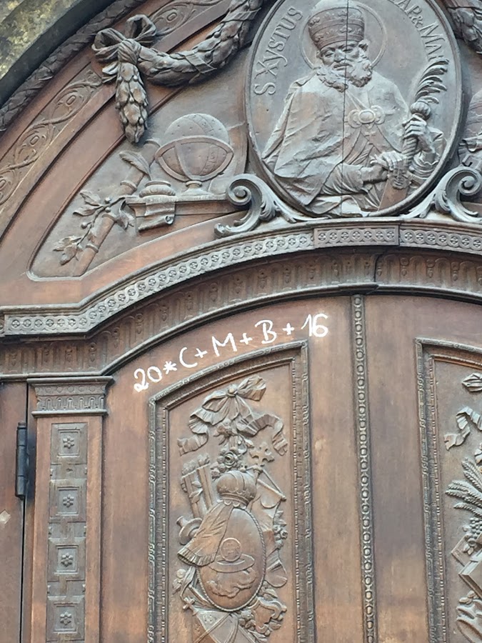 Resulta que es una tradición curiosa que consiste en que el día 6 de enero se escribe con tiza sobre el umbral de la puerta de las casas o de las iglesias: las 2 primeras cifras del año, luego C+M+B y finalmente las 2 últimas cifras del año. La inscripción se deja hasta Penecostés o hasta que la borre la lluvia. Son las iniciales en latín de "Christus Mansionem Benedicat" , es decir Dios bendiga esta casa. También hace referencia al nombre de los Reyes Magos (Caspar,Melchior,Baltassar).