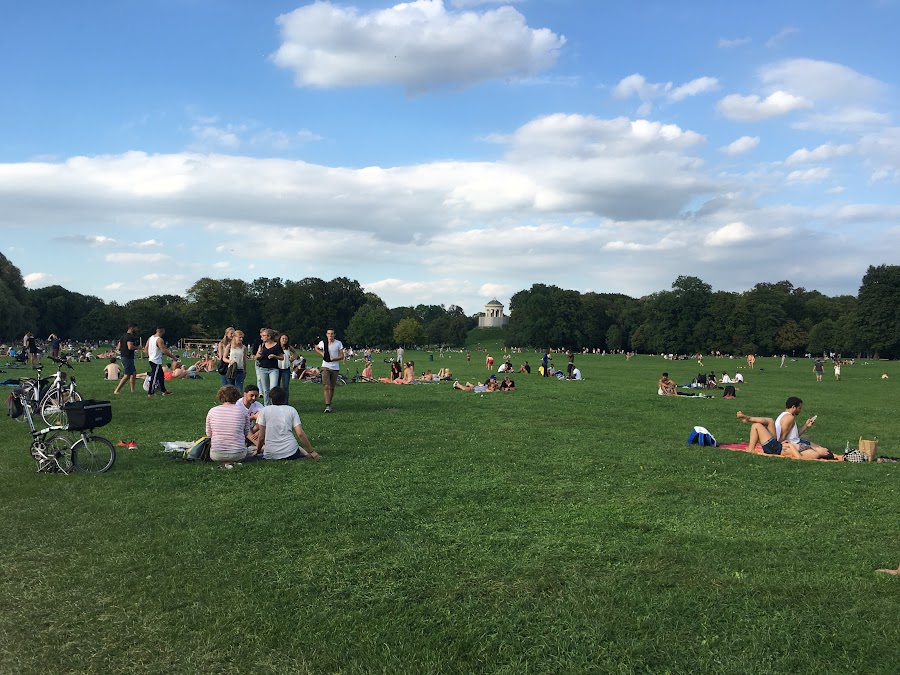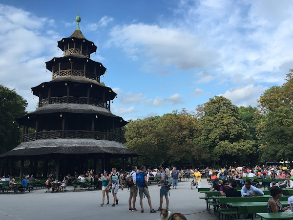 El Jardín Inglés es uno de los jardines más grandes de Alemania y los muniqueses aprovechan para tomar el sol (incluso hay una zona nudista), bañarse, hacer picnic o tomar una cerveza en la biergarten con pagoda china incluida.
