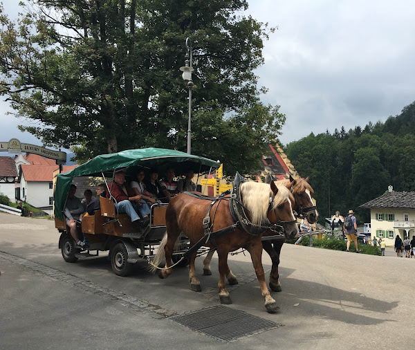 Pero ya para el de Neuschwanstein, sobretodo si vais con niños, sí que es mejor coger algún transporte, os recomiendo subir en autobús porque te deja cerca del Marienbridge, puente sobre el que se pueden hacer las fotografías panorámicas del castillo y luego bajar en coche de caballos (que además es más barata la bajada que la subida) o incluso a pie, nosotros bajamos en coche de caballos porque a los niños les hacía muchísima gracia.