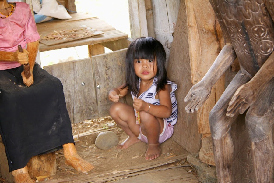 Me encantó esta niña, que debe de ser hija o nieta de los talladores...