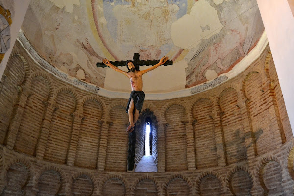 Antigua mezquita del Cristo de la Luz. Cuenta la leyenda que durante la reconquista de Toledo el caballo del monarca cayó de rodillas al llegar a la altura de mezquita, donde actualmente vemos marcada con una piedra blanca el pavimento.