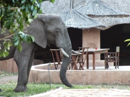 El todoterreno nos llevó a través de Mfuwe mientras contemplábamos sus chozas de barro y paja y las tiendecillas de ladrillo y latón; en poco menos de una hora nos plantamos en el Track&Trail river camp.Tres machos de elefante nos dieron la bienvenida.