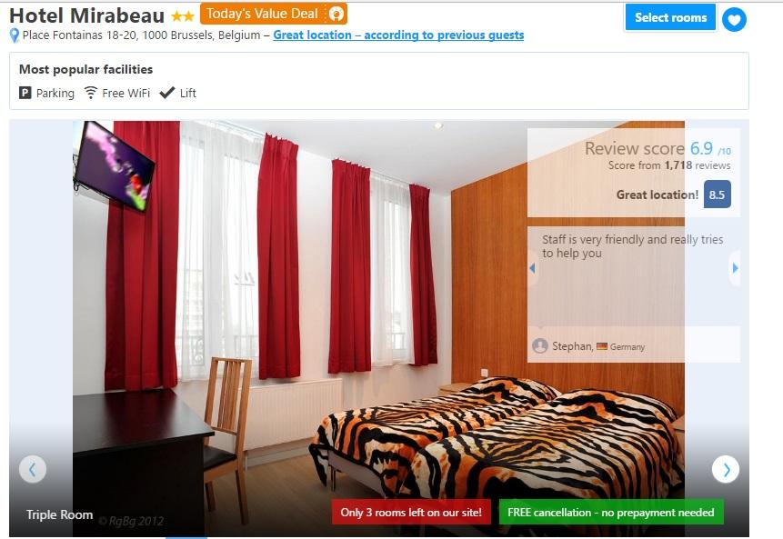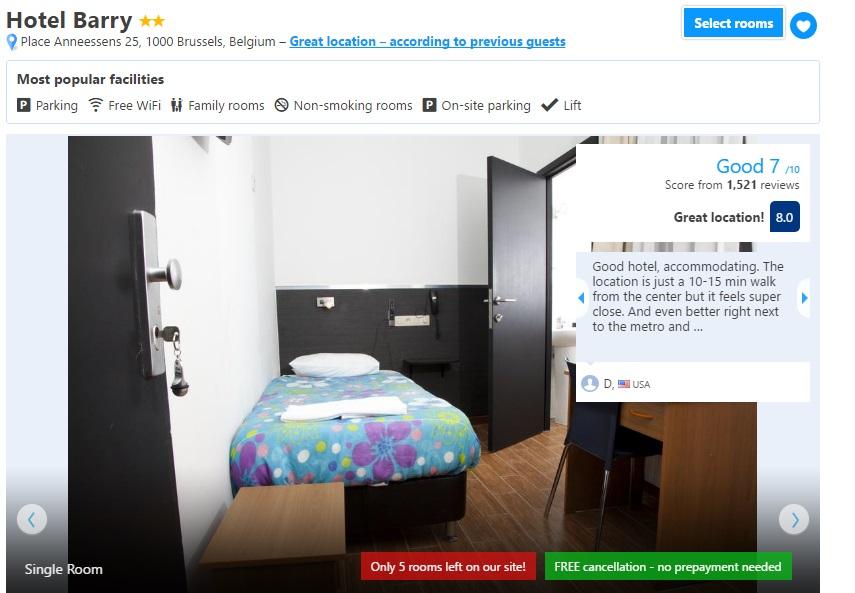 Nos toca también buscar alojamiento en Bruselas. Vamos a mirar tanto la opción de hoteles como apartamentos. Los hoteles, los podemos buscar por en Booking, donde encontramos sus “ofertas estrellas” de reserva y pago online, sin cancelación, pero con precios que realmente merecen la pena. En pleno corazón de Bruselas encontramos hoteles modernos y reformados con habitación doble, wifi, restaurante buffet por si quieres desayunar, baño privado por 50 euros la noche, es decir, 25 euros por persona y noche. La web de Booking es: https://www.booking.com