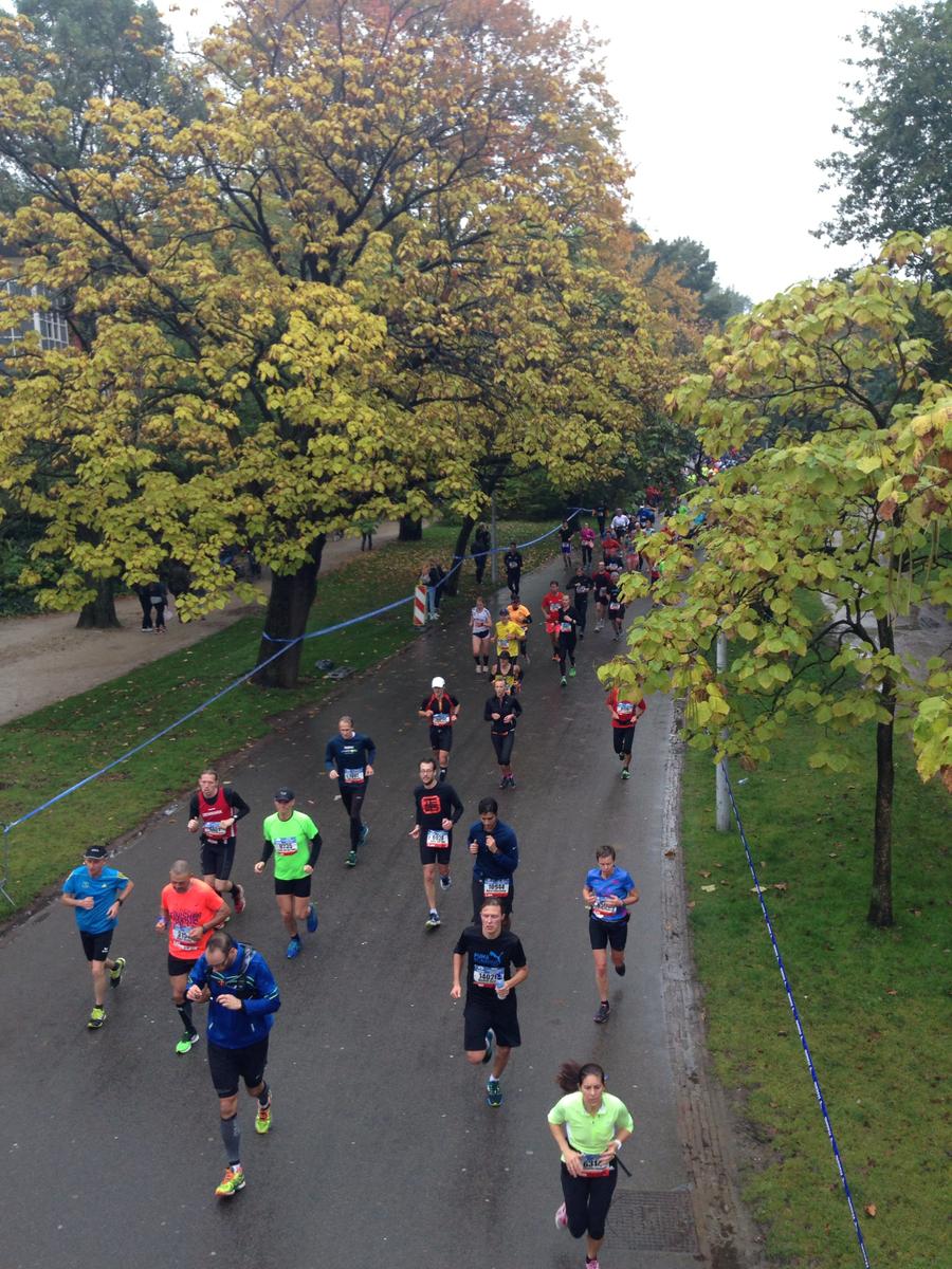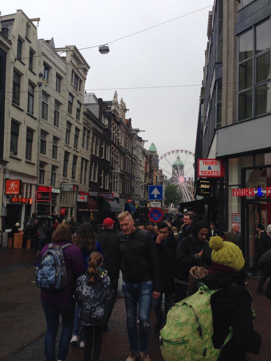 Ahora mismo hay una exhibición que me encantaría ver que es en el museo de Van Gogh, en esta presentación se muestra pinturas del mismo junto a las de Edvard Munch en un afán de compararlos por la similitud de su arte así que emprendimos el trayecto esta vez en bus porque aún no me sentía al 100%, pero no contabamos con la gran maratón que se realizaba en la ciudad y los trayectos de los buses estaban retrasados y cambiados así que cuando llegamos al museo vimos una fila interminable y debíamos esperar bajo esa lluvia chispeante durante no se bien cuanto tiempo. Nos pusimos en fila y esta avanzaba a su ritmo pero el reloj avanzaba más rápido y se nos acababa el día haciendo fila, así que salimos de ella y caminamos bajo la lluvia pasamos por plazas, calles, edificaciones preciosas y por supuesto más de una vez nos encontramos con la gran maratón de 43 Km. acompañando a esta se veía gente entusiasta que vitoreaba a viva voz a quienes conocían y desconocían, se sentía una atmósfera única, hasta vi flameado una bandera peruana.