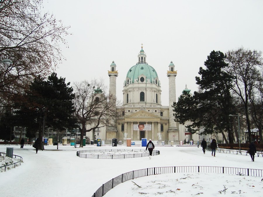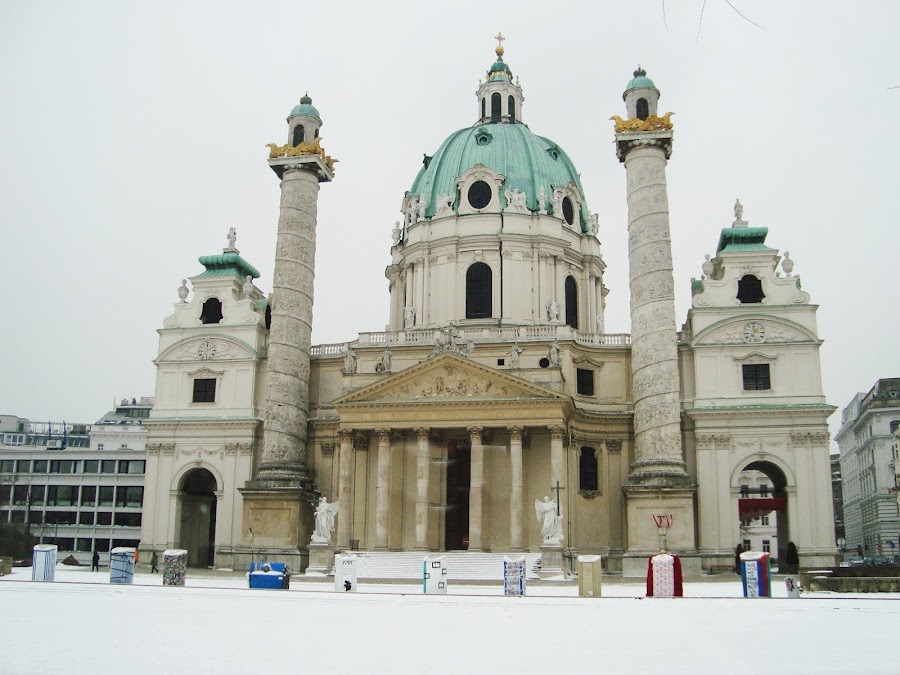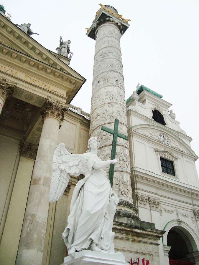 La construcción duró 25 años, y representa no sólo la ofrenda de un emperador a su santo, sino que la iglesia misma nos recuerda los sufrimientos del pueblo vienés durante la plaga, como podemos ver en el frontón coronado por la figura de San Carlos.