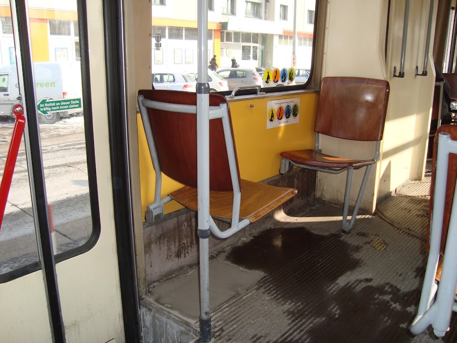 Hay un secreto que me gustaría compartir: dos asientos en cada vagón son el objeto de deseo de cualquiera que se suba al tranvía. La razón es que debajo de ellos se ubican las estufas que mantienen la temperatura en el interior, ya que al ser muy antiguos no tienen aire acondicionado. La lucha por conseguir esos dos asientos en invierno es casi a muerte. No me extraña, estando a -15º...