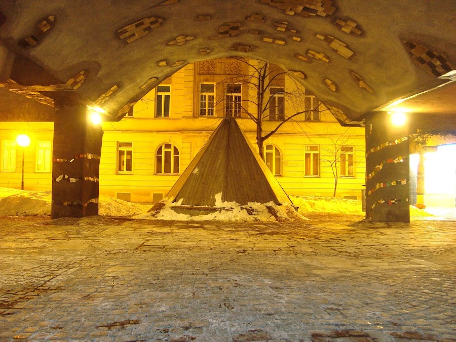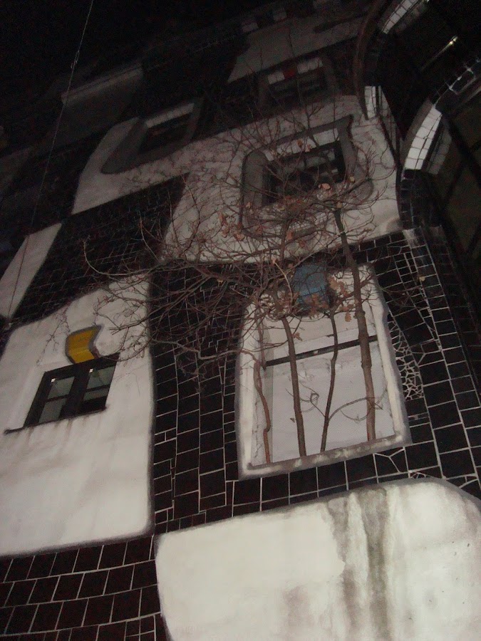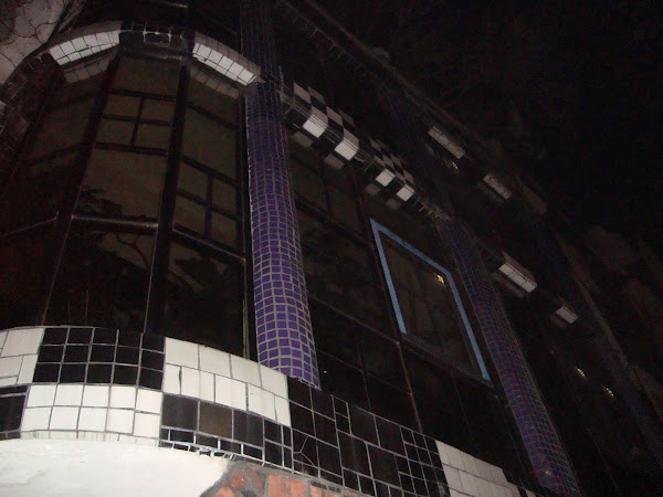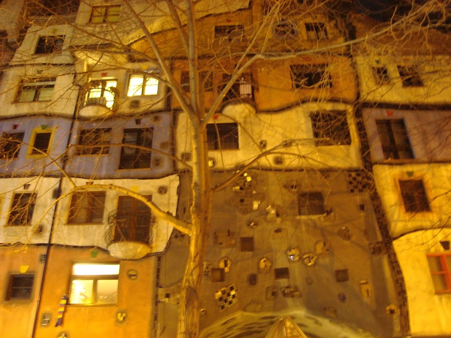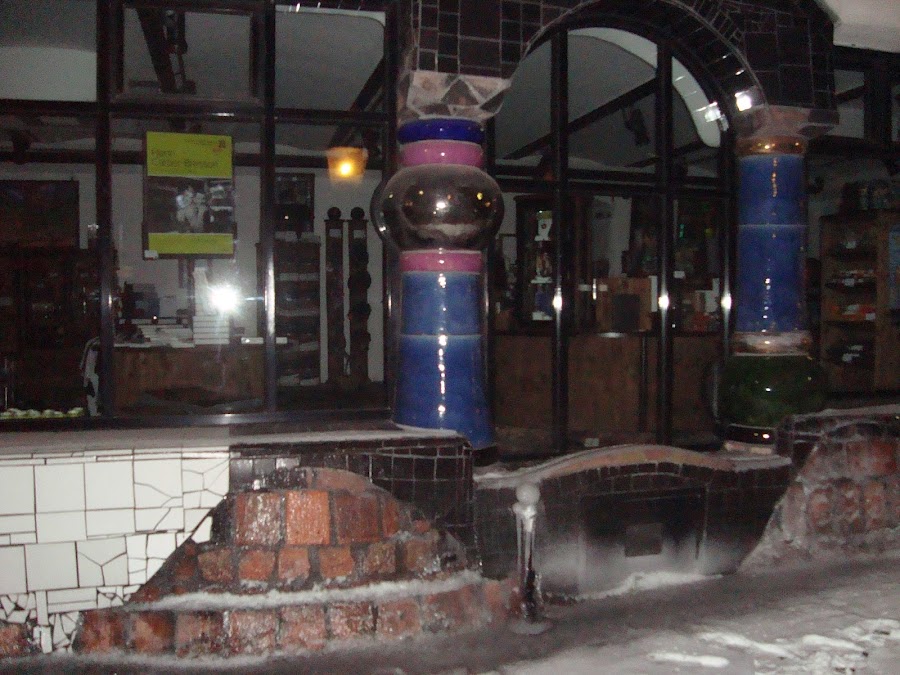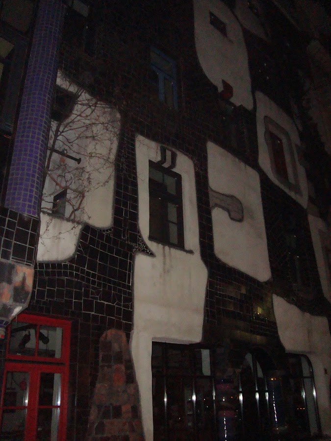 La casa, que realmente es un bloque municipal de pisos, fue levantada en 1985 por el artista Friedensreich Hundertwasser, que quiso revelarse contra la frialdad de la arquitectura moderna. Las bandas irregulares de color en su fachada, aunque de noche no son tan llamativas, rematadas con cúpulas bulbosas, hace que mucha gente lo considere más cerca del cuento de Hansel y Gretel que de un bloque de viviendas subvencionadas.