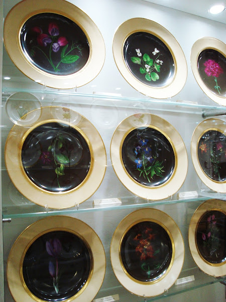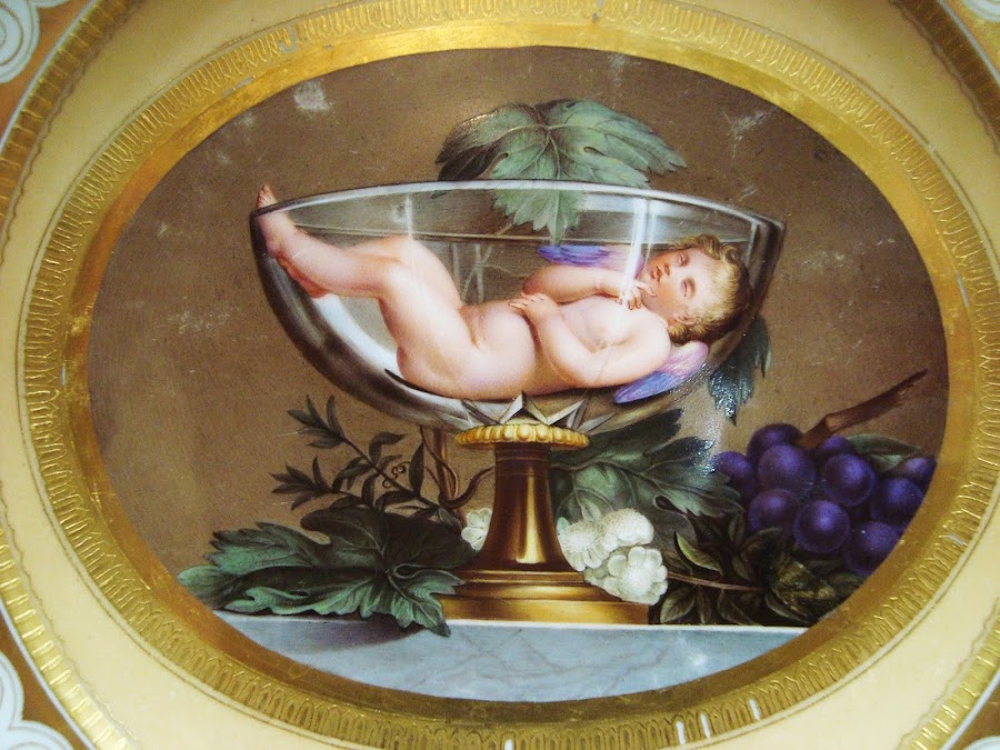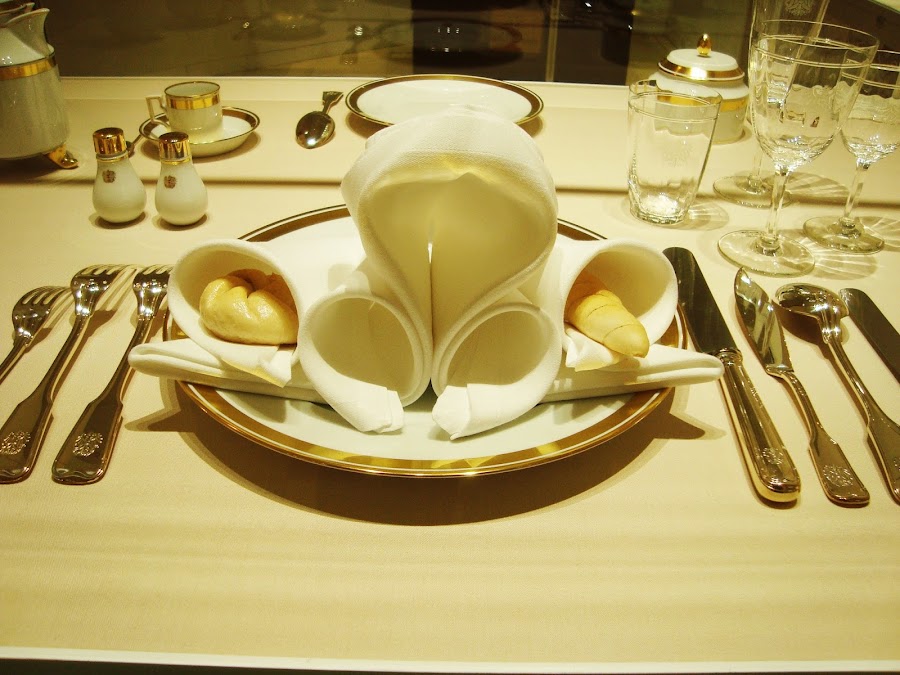Hay que detenerse en muchas ocasiones para poder deleitarse con la filigrana dorada, el doblado de servilleta al modo imperial, o las pinturas que adornan los fondos de plato.