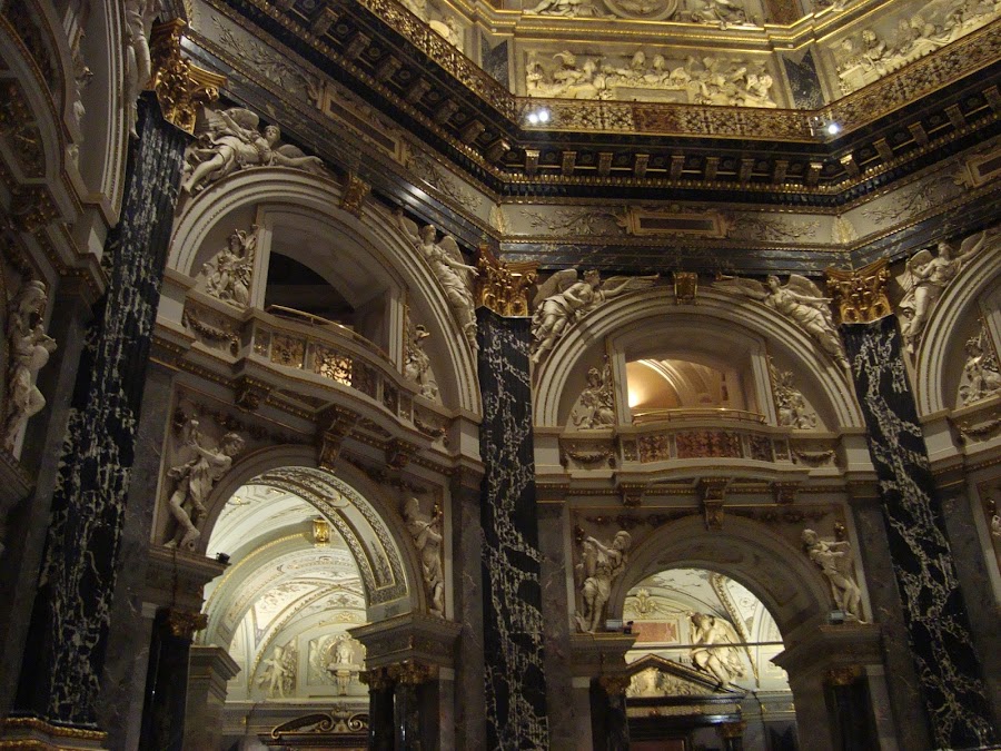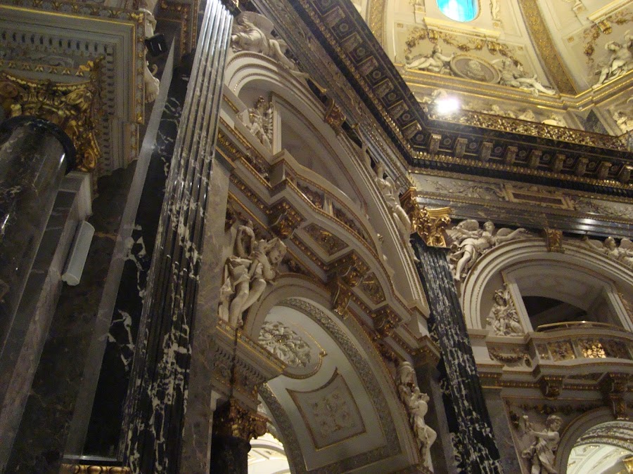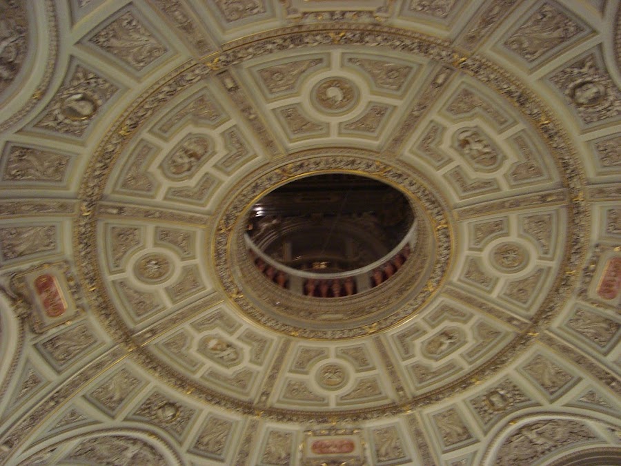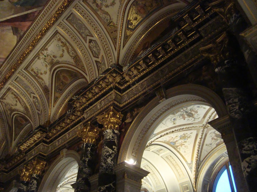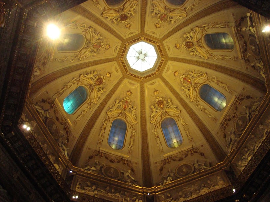 El edificio fue construido entre 1871 y 1891, veinte años de trabajo que bien valieron la pena, ya que la filigrana de los techos, la nobleza de los materiales empleados y el exquisito buen gusto se respira desde que se cruza la entrada. En muchos momentos me sorprendía a mí mismo mirando los delicados techos o la elegancia de las columnas tersas y pulidas, en vez de contemplar el cuadro que tenía enfrente.