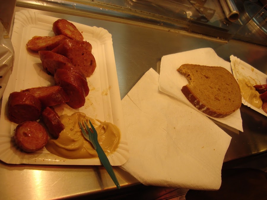 Menos mal que cerca había un puesto de sabrosas salchichas vienesas para ayudar a pasar el frío.