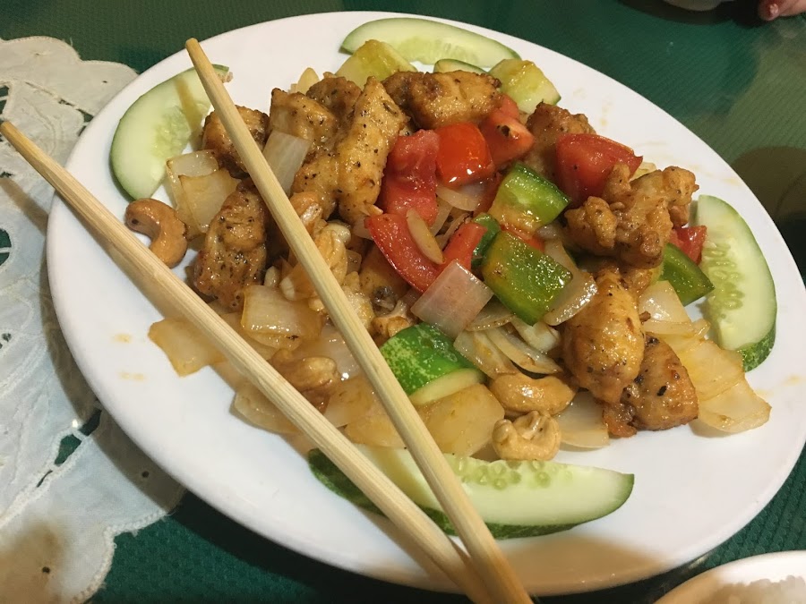 Los platos elegidos aparte del consabido arroz hervido que viene a ser como nuestras papas fritas españolas, pedimos un delicioso cerdo frito con especias..