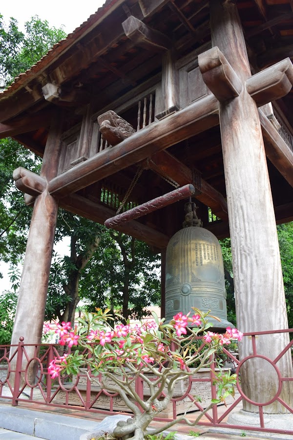 Y custodiándolo, como en casi todos los templos de Vietnam, el tambor y la campana bajo dos templetes elegantes e imponentes.