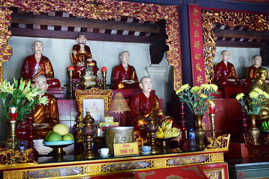 En la pagoda también se adora a las llamadas "Madres". La Madre verde tiene dominio sobre las montañas y los bosques, la Madre blanca sobre el agua, y por último, la Madre roja gobierna el cielo. Ellas son las diosas más antiguas de Vietnam, incluso más que Buda.