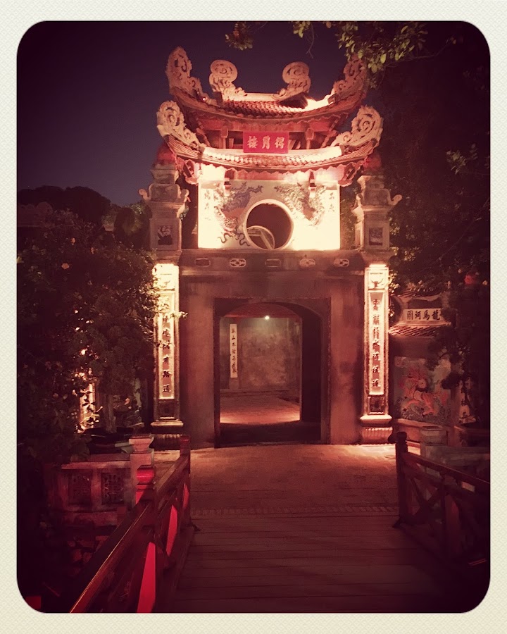 Pero realmente el objetivo final de la visita al lago es el Templo de Ngoc Son, o Templo de la Montaña de Jade, situado en una isla a la que sólo se puede acceder por el Puente Rojo del Sol Naciente.