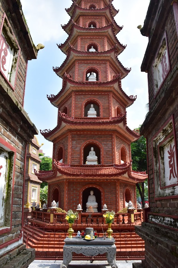Esta pagoda es una de las más antiguas de Vietnam y está situada entre dos lagos, el lago Oeste y el Truc Bach.