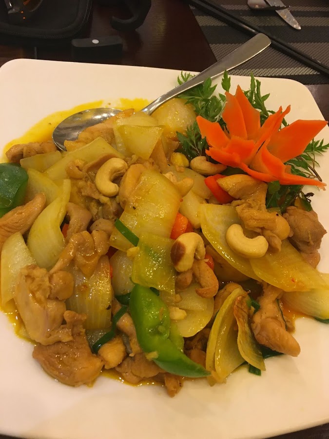 Verduras con pollo y anacardos