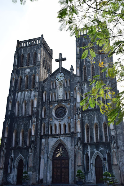 Resulta curiosísimo el contraste entre el ambiente tan modernamente oriental, abigarrado, colorista y heterogéneo que gobierna el Barrio Antiguo de la ciudad y ésta mole de aire medieval que preside una pequeña plaza que parece un oasis de silencio dentro del caos de Hanoi.