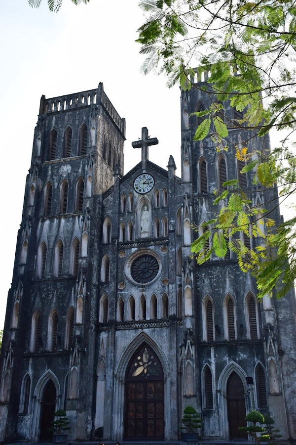 San José parece muy antigua, con sus paredes negras no por la edad, sino por la polución, sus aires de dama francesa y sus torres que pretenden emular a Notre Dame de París. Sin embargo fue edificada en 1886 en estilo neogótico para servir de archidiócesis de los más de 4 millones de católicos del país y dedicada a San José, santo patrono de Indochina. Cada torre mide 31 metros de altura y tiene cinco campanas.