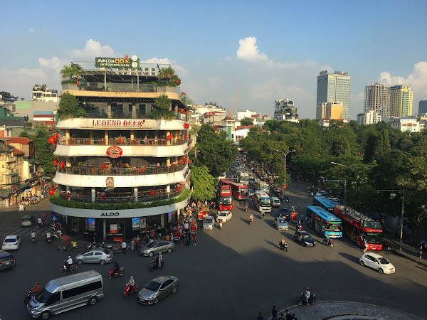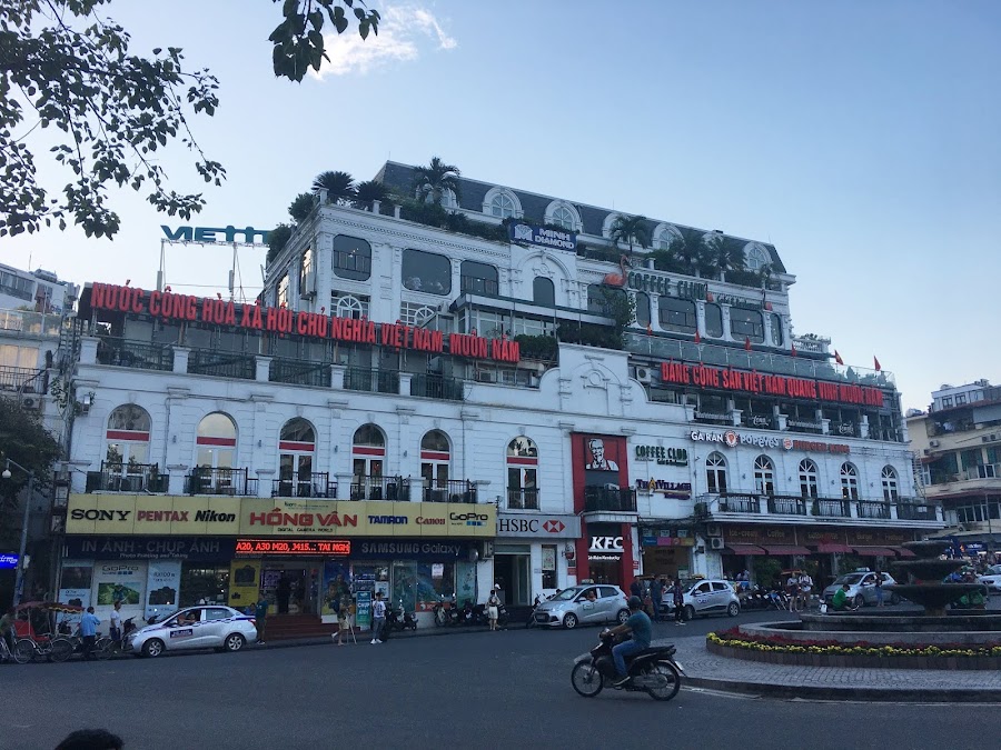 Teníamos que hacer tiempo para la última visita del día, el Teatro de Marionetas sobre el Agua, así que nos fuimos a tomar un café típico al fabuloso Coffee Club en la plaza Dong Kinh Nghia Thuc, que es el centro neurálgico de la modernidad de Hanoi. Desde cuya terraza se disfruta de unas maravillosas vistas del lago Hoam Kiem y del caos circulatorio de la ciudad.
