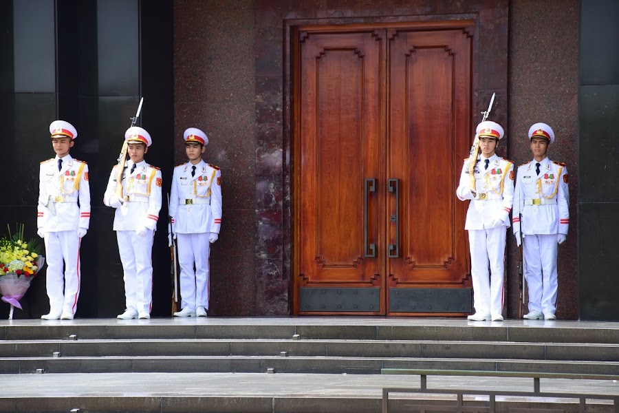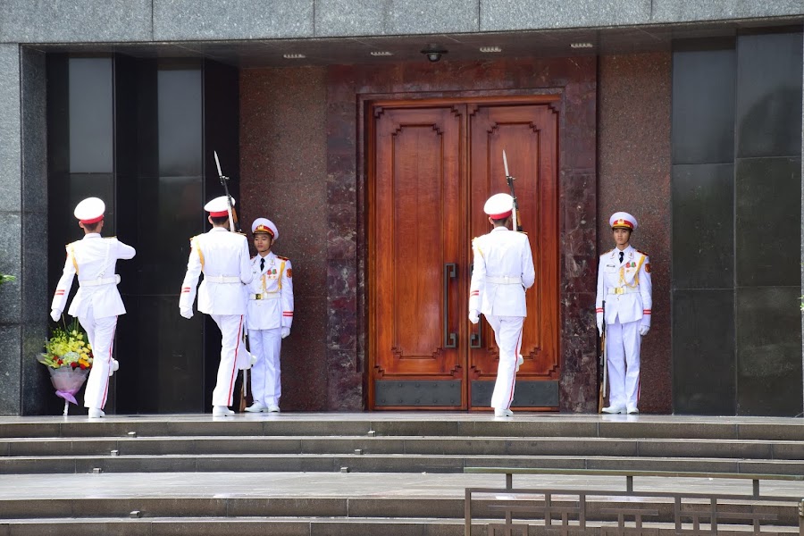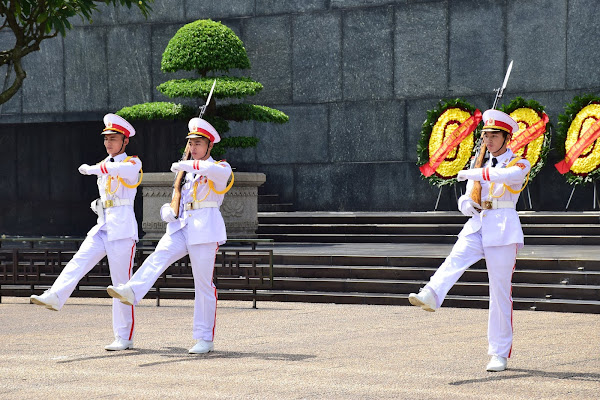 A su izquierda encontramos un inmensa explanada que alberga varios parques, edificios gubernamentales y sobre todo el objetivo de todo vietnamita ( y viajero de allende los mares) que visite Hanoi, estamos hablando del Mausoleo de Ho Chi Minh.