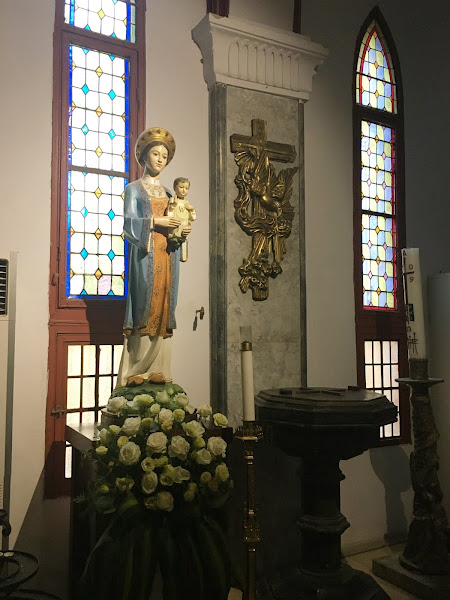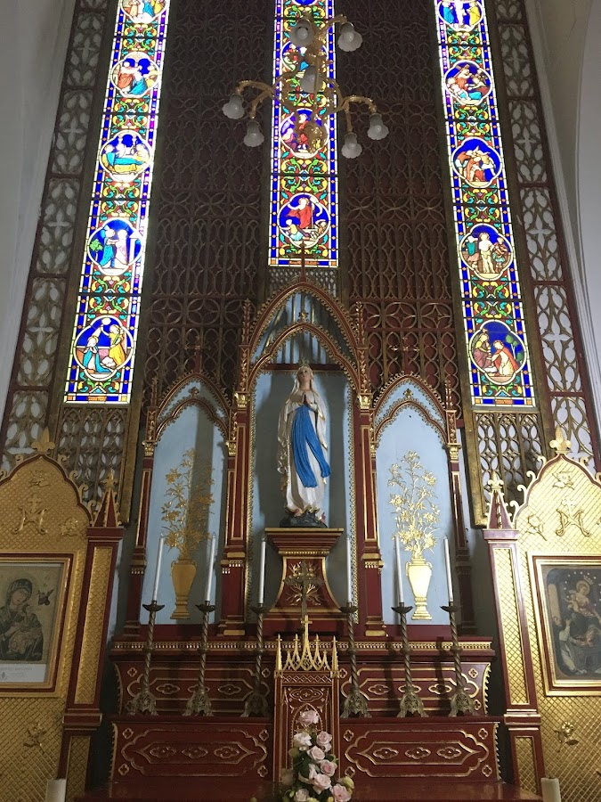 Es muy interesante ver la manera en que se combinan los elementos decorativos del neogótico con los colores y formas de la arquitectura vietnamita, sobre todo los propios de la zona de Hué.