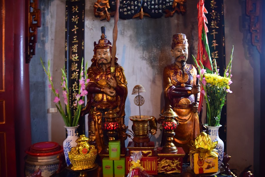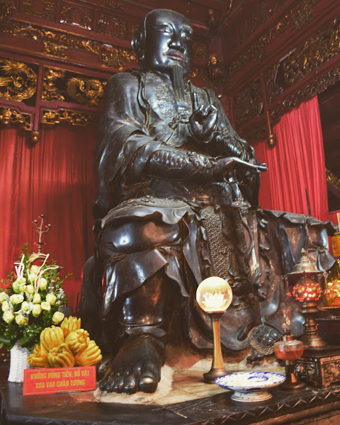Dedicado a Xuan Wu o Tran Vu ( Dios del Norte), el templo ha sido restaurado y modificado a lo largo de los siglos, para seguir albergando la famosa escultura en bronce de Tran Vu de casi 4 metros de altura y 4.000 kgs de peso.