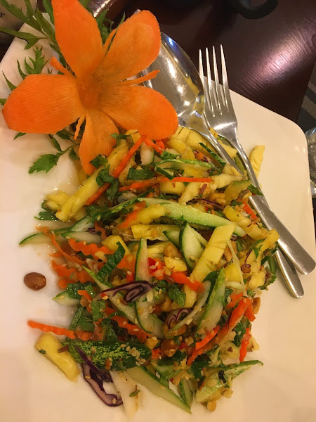 Arquitectónicamente el restaurante era una delicia, un edificio en el más puro estilo colonial francés con abundante decoración "art decó", sin embargo la comida, aunque no estaba mal, pasó desapercibida. Eso sí, las cervezas el triple que en un restaurante menos pretencioso y los cafés ( Vietnam es el mayor productor de Asia) a precios prohibitivos, el doble que las cervezas.