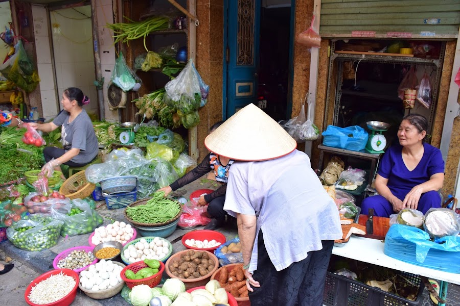 Los 36 gremios de Hanoi se establecieron definitivamente en este barrio, vendiendo velas, banderas, seda, bordados, lacas, pinturas... Hoy a todo esta oferta que hoy se ha diversificado y contaminado un poco por el turismo, se han unido los vendedores ambulantes que aprovechan el tirón para intentar ganarse la vida.