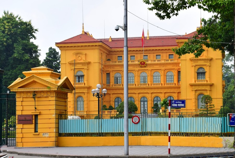 De aquí nos damos un salto andando hasta el centro del poder de Hanoi, el Palacio Presidencial, edificio levantado en 1906 y recientemente restaurado, que fue en sus inicios el palacio del gobernador general de Indochina y hoy se dedica casi exclusivamente a recepciones oficiales.